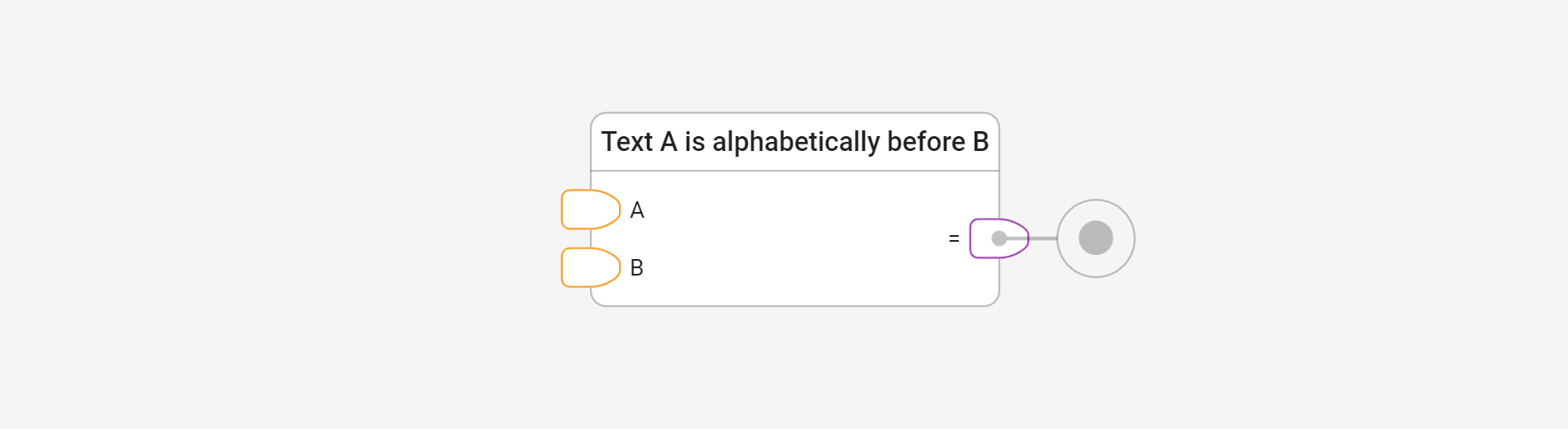 Input value 'B' and input value 'A' return false because the text 'B' is alphabetically before text 'A'.